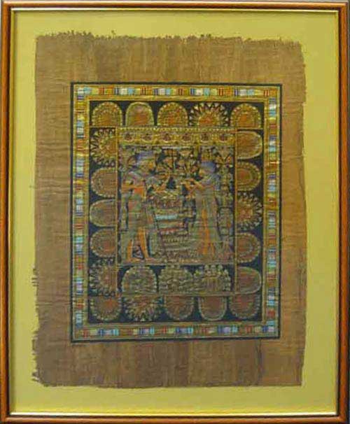 Рамки для папирусов, багетное оформление этнических изображенийНаша багетная мастерская предлагает свой опыт в оформлении разного рода этнических изображений (папирусов, рисунков на рисовой бумаге , иероглифов, африканских холстов и т.д. и т.п.) Оформление папируса заключается в правильном подборе паспарту, рамки и канта по цвету и стилю. Для этого в нашей коллекции багета имеется неплохой выбор вариантов, а при умелом использовании паспарту как по прямому назначению (с вырезом окна) так и в качестве фона, можно получить гармонию и оригинальность "в одном флаконе". Багет (рамки для папируса) в предлагаемом спектре в основном стилизованы под натуральные растительные поверхности (бамбук, грубая кора дерева, волнистая структура стебля, солома, ствол, поеденный жучком, характерные трещины тонкой коры). Также этнические мотивы могут быть заложены в самом багете. Кроме багета немалое значение также имеет и то, как смотрится сам папирус, т.е. гораздо эффектнее он будет смотреться, если например, будут видны его неровные края, это несомненно предает натуральный вид папирусу и соответствует стилю. Для этого можно папирус положить на цветной картон для паспарту (черный, темно - синий и т.д.) так чтобы был контраст между цветом папируса и цветом картона для паспарту. Закрепляем мы его на картоне с помощью двустороннего скотча. Также можно папирус поместить в рамке между двумя стеклами (каждое из которых толщиной 2мм ) причем эффект буден намного выше если переднее стекло будет антибликовым. ПапирусыКак материал для письма папирус Древнего Египта был изобретен примерно в начале 3-го тыс. до н. э. С середины 1-го тыс. до н. э. он получил широкое распространение в других странах Средиземноморья. Для изготовления писчего материала стебли папируса разрезали на узкие продольные полосы и накладывали их краями одна на другую. На полученный таким образом слой накладывали другой слой, полосы которого располагались поперечно полосам первого, оба слоя сильно сдавливали, а затем высушивали. Свиток получали, склеивая несколько листов. Он имел белый или почти белый цвет, но со временем темнел и терял эластичность, становясь хрупким и ломким. В Египте папирус использовали еще в 9 в. н. э., хотя уже с 8 в. его стала вытеснять бумага, изобретённая в Китае. Слово "бумага" в ряде европейских языков (нем. Papier, франц. papier, англ. paper) восходит к древнегреческому - papyros. На каждое изделие которое выходит из нашей мастерской мы бесплатно монтируем подвес (шнур на кольцах или губчатая подвеска) и обеспечиваем аккуратный вид сзади, т.е. задний картон (если он есть) представляет собой не гофрокартон, а шлифованный МДФ (оргалит) и щель между ним и рамкой закрывается подходящим по цвету (коричневым), крепкодержащимся бумажным скочем. При выдаче заказа изделия упаковываются в пакет. |